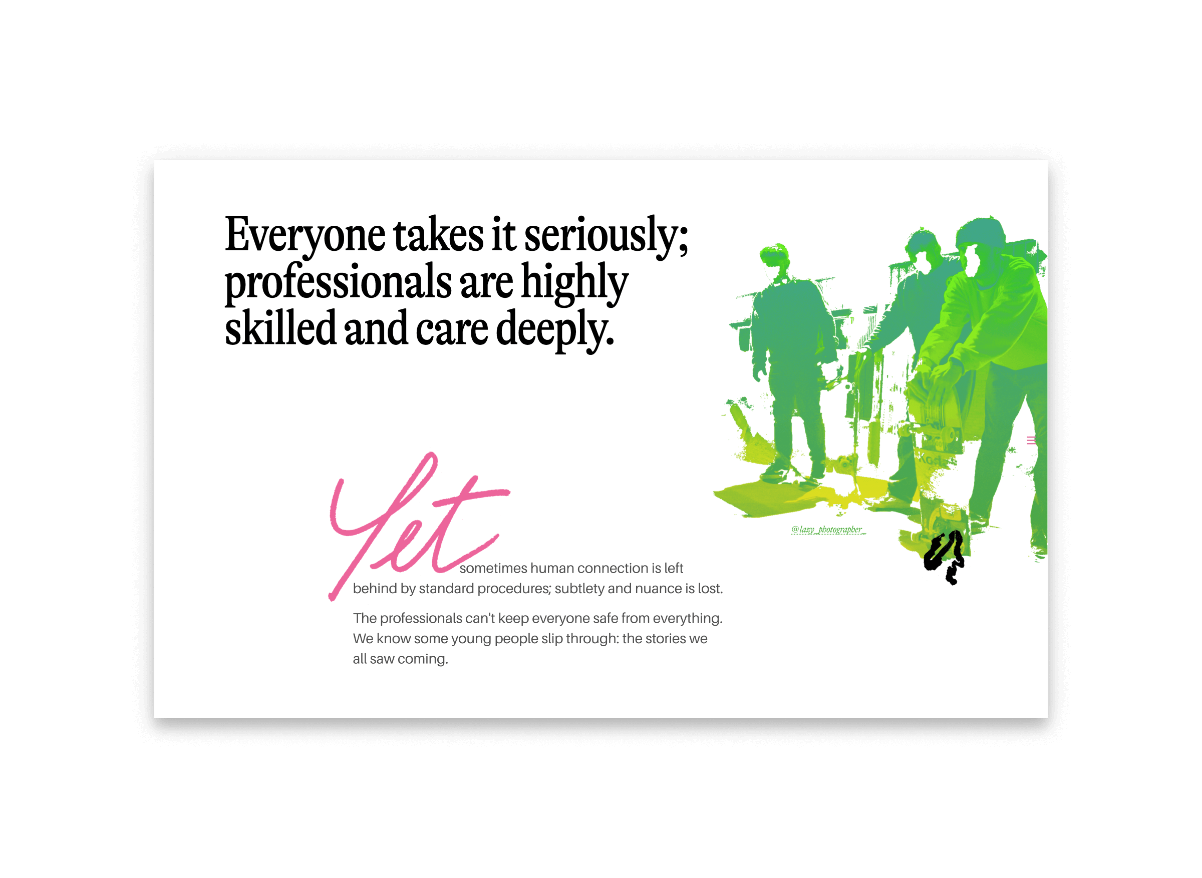 A research and design project for Essex City Council meant to create space to think outside organisational structures, and consider more effective ways to deal with risks in the community, especially those concerning young people.