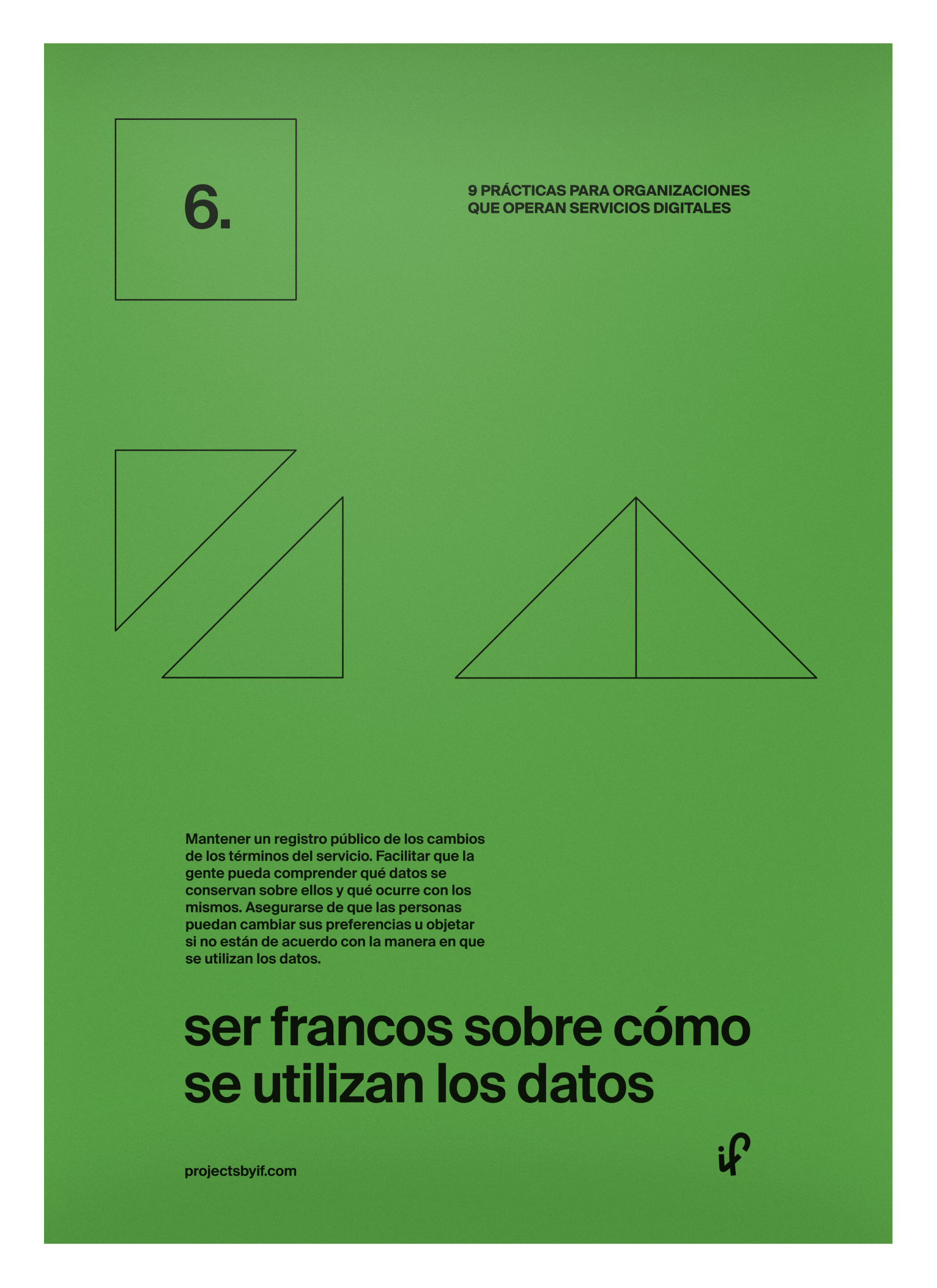 Posters illustrating IF's 9 practices for organisations to improve their approach to data. The posters are available to download and print in English, Arabic, French, Mandarin, Portuguese and Spanish.